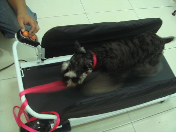 要剪毛前先讓這個過動兒跑跑跑步機消耗一下體力