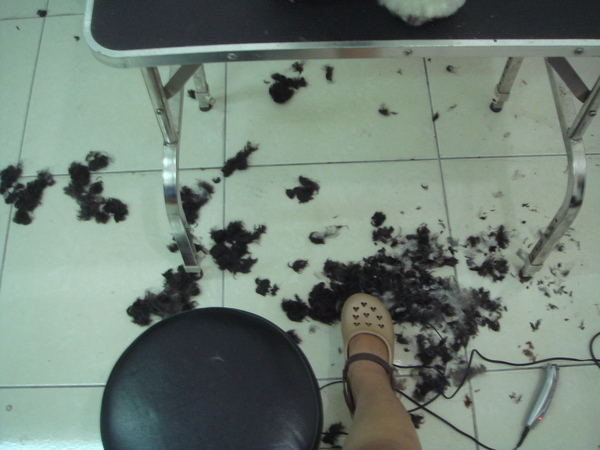 一地的毛~還不包括修腳的時候裡掉的毛,這邊指有修剪背部的毛就這麼的多