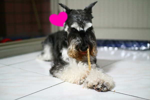 就手剁雞肉泥,幫顆比做了很多雞肉條,剩下的就拿了一根原味牛皮骨來做雞肉棒子