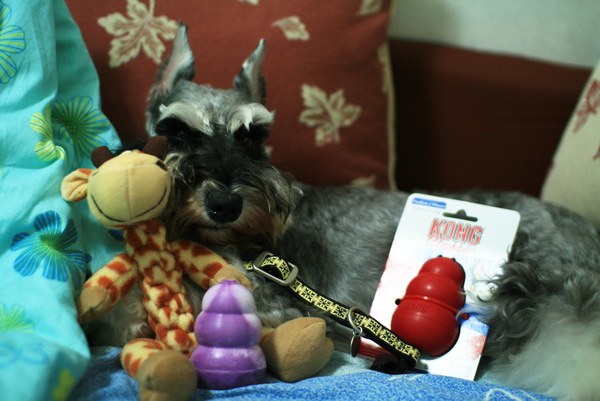 本來在睡覺的顆小比看到我們在換衣服也莫名其妙的被套上外套牽繩