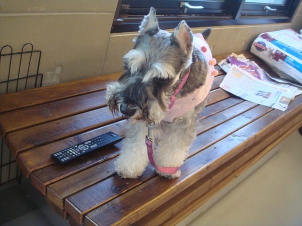 下班的時候去接顆比,羅醫生讓我帶著顆比比去散步,但帶著打點滴的機器我就不好牽顆比