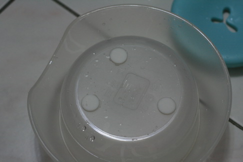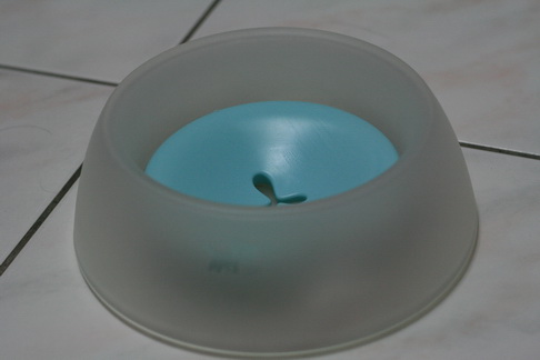 我把碗拿出來洗好裝了水,水會出現的位置大概就只有水孔那麼大