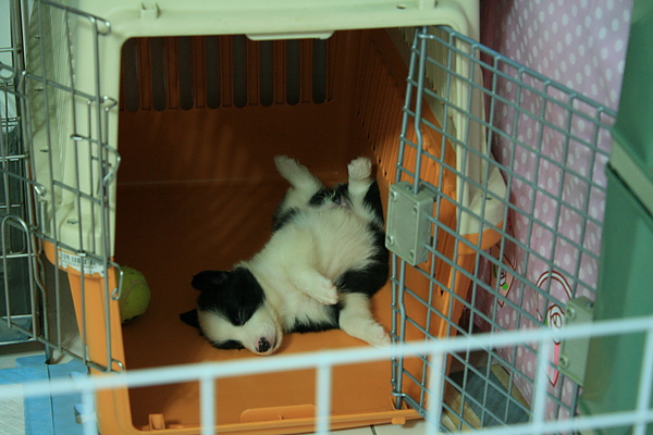 雖然比顆比姐姐慢了五天,但是摳力終於也會在籠子裡翻肚睡覺囉