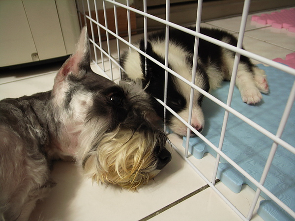 從西西到家的第三天開始,我就慢慢的讓顆比跟她接觸,每次接觸的時間都短短的