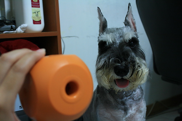 我塞了大約顆比一餐 1/4 量的飼料進去給比比玩,顆比可以玩個15分鐘喔!