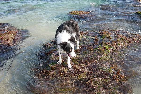 不過後來想要引導西西到另一塊礁岩上,但西妞踩空了.......之後連沙灘都不願意靠近了 TT