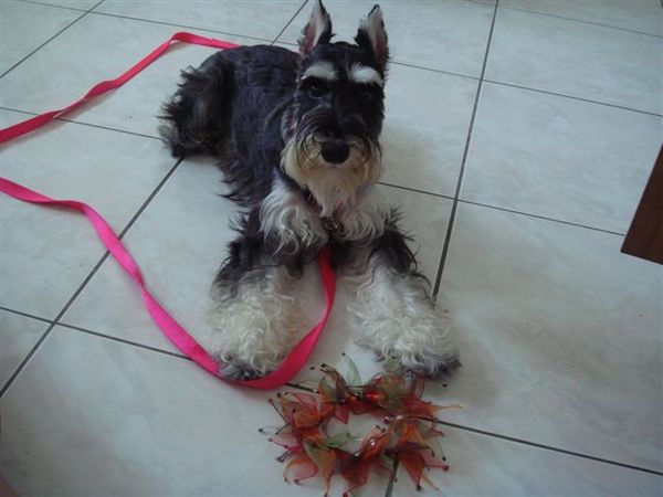 後來因為雪納瑞皮膚不好 顆比又因為五月的豪大雨給我發霉 身上美麗的皮毛禿了一塊TT